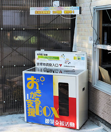 とさせて頂いております。 それ以外の日程での搬入の際には、誠に恐れ入りますが、上記の支援物資投入箱(お気軽支援ボックス)が設置してありますので、そちらの方へお願いします。